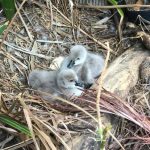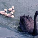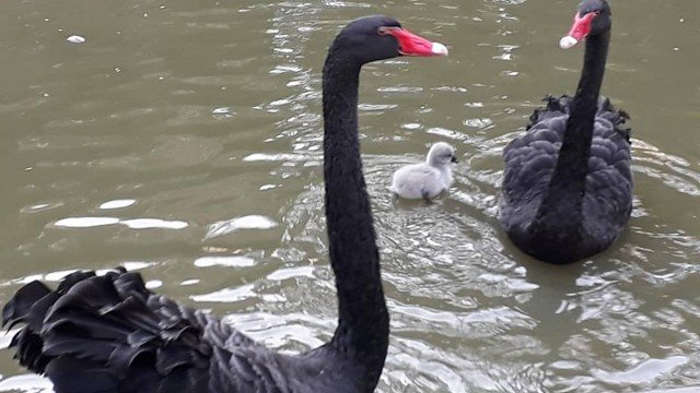 Mas ele se contenta em proteger os ovos sem participar da incubação. Se um dos pais estiver ausente sem que a sucessão seja imediatamente garantida, a ave toma o cuidado de cobrir os ovos com material vegetal, de modo que sua brancura não atraia predadores. Ao nascer e por um ano, os pequenos cisnes são castanho-acinzentados.